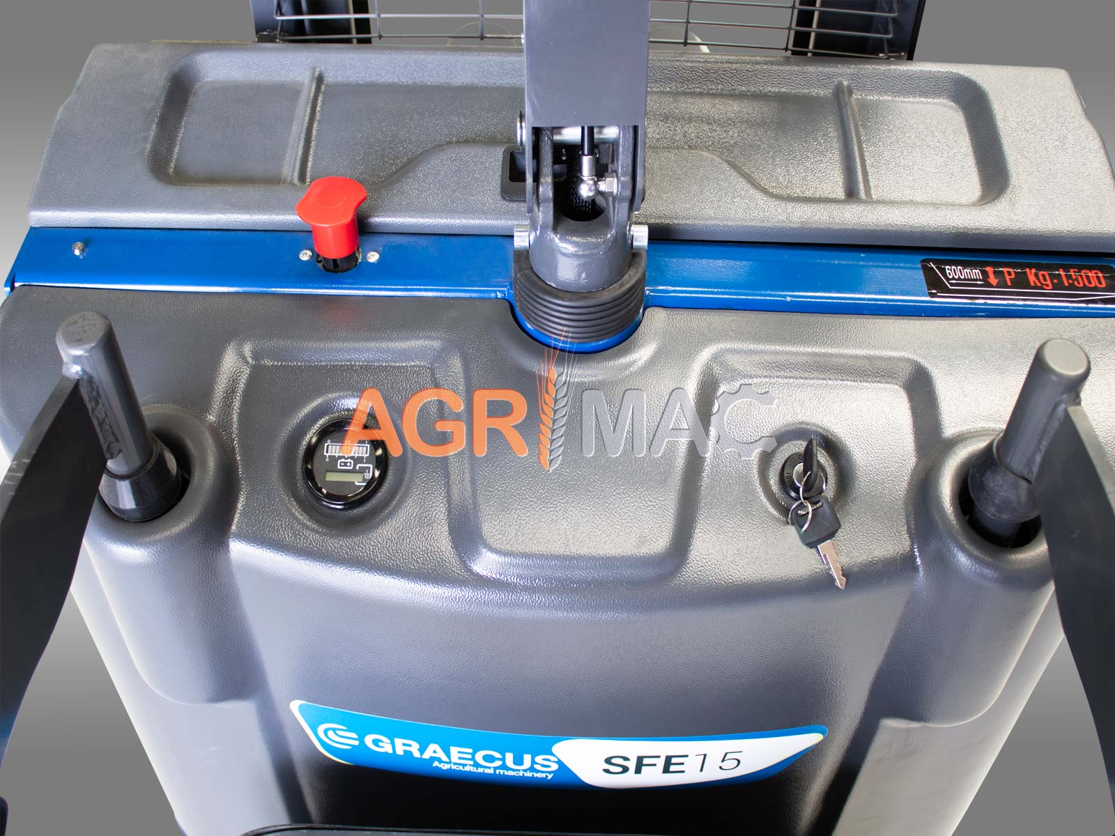 - Εφοδιασμένο με αναδιπλούμενη πλατφόρμα χειριστή και πλαϊνά προστατευτικά, με αισθητήρα ταχύτητας κάτω από την πλατφόρμα για ασφαλή οδήγηση.