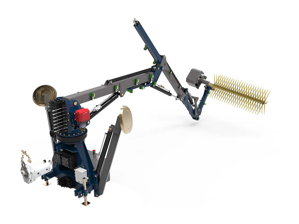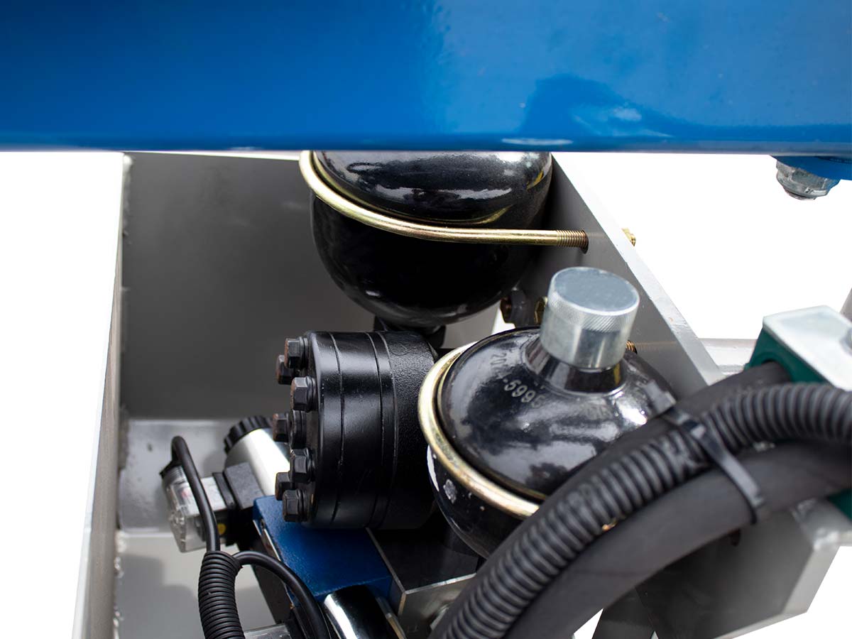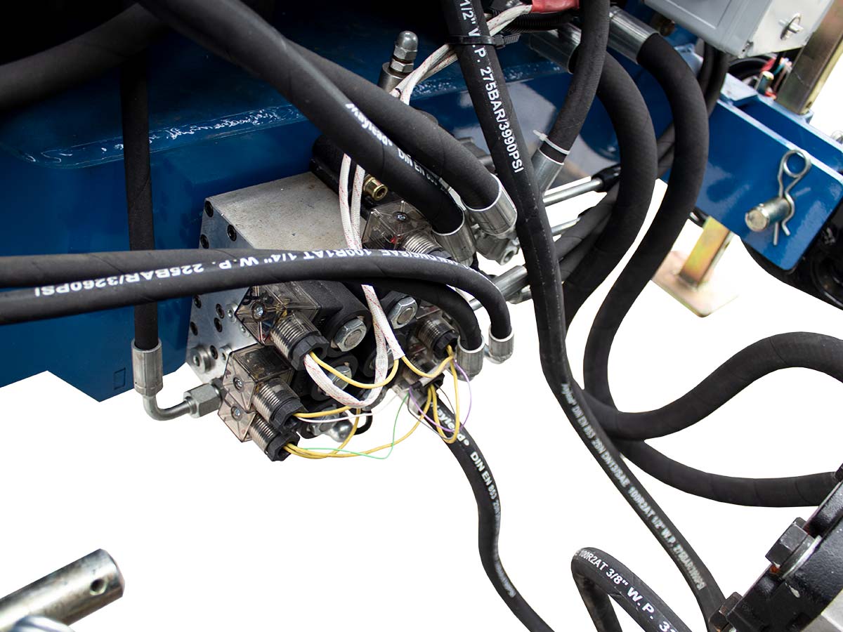 - Επιπλέον αποτελείται από μια δεξαμενή λαδιού με φίλτρο, έναν ψύκτη λαδιού με θερμοστάτη, έναν αναλογικό ηλεκτροϋδραυλικό διανομέα για την κίνηση και την έκταση των βραχιόνων και έναν ηλεκτρικό διανομέα για τα ποδαρικά σταθεροποίησης και τη χτένα για ράβδισμα.