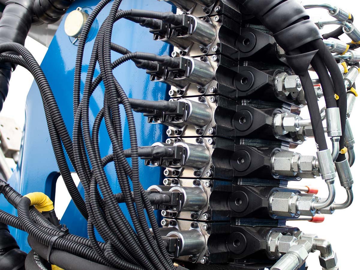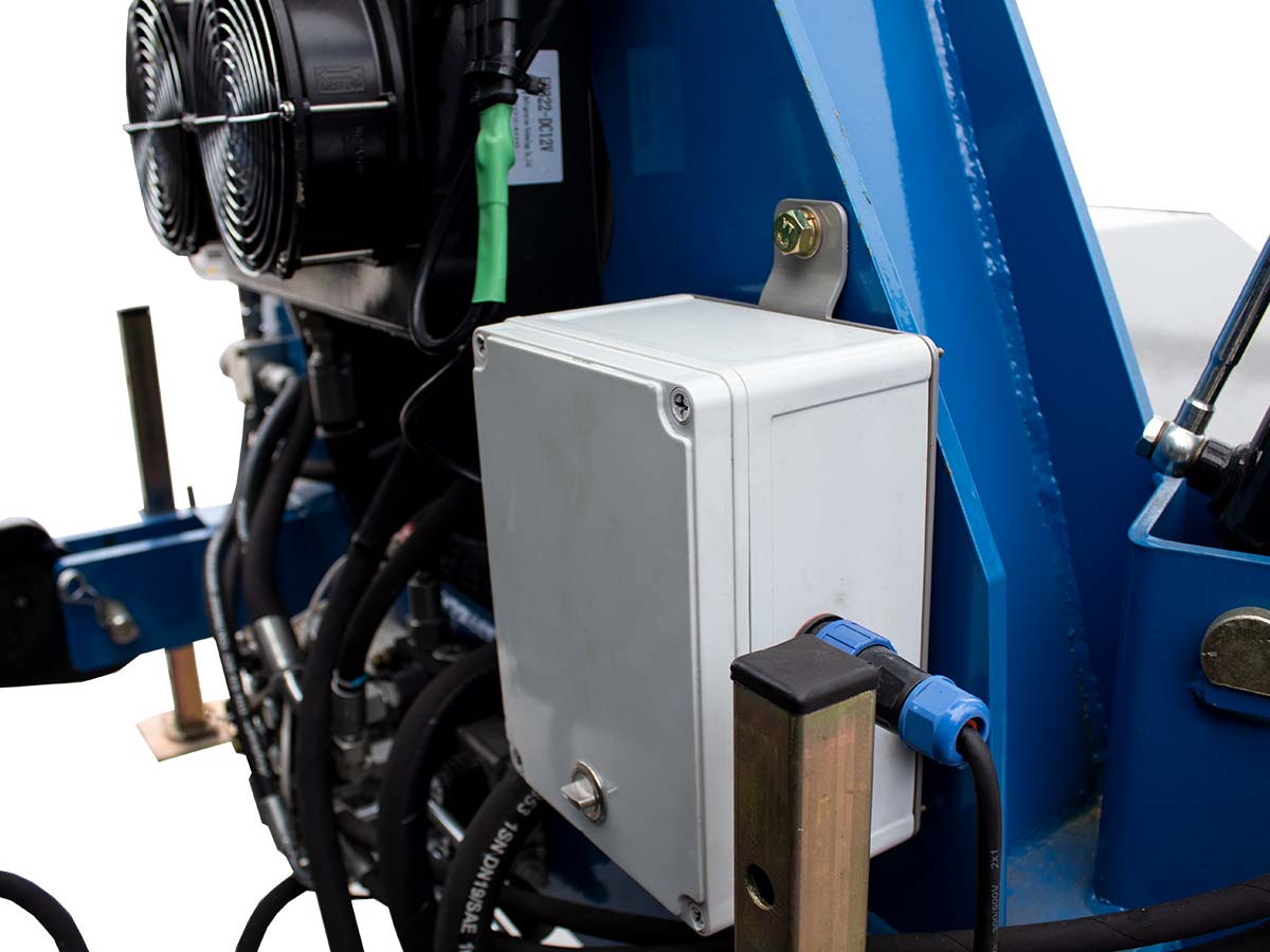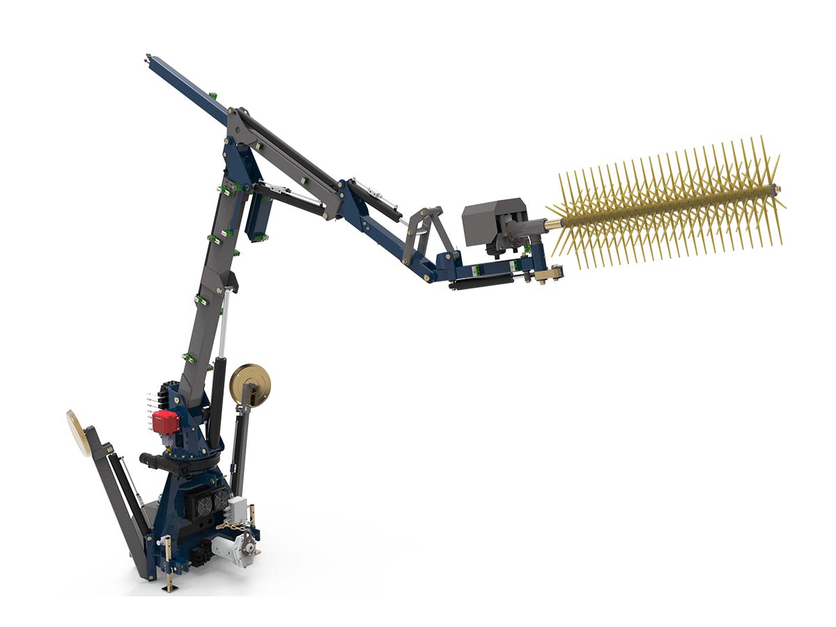 - Επιπλέον αποτελείται από μια δεξαμενή λαδιού με φίλτρο, έναν ψύκτη λαδιού με θερμοστάτη, έναν αναλογικό ηλεκτροϋδραυλικό διανομέα για την κίνηση και την έκταση των βραχιόνων και έναν ηλεκτρικό διανομέα για τα ποδαρικά σταθεροποίησης και τη χτένα για ράβδισμα.