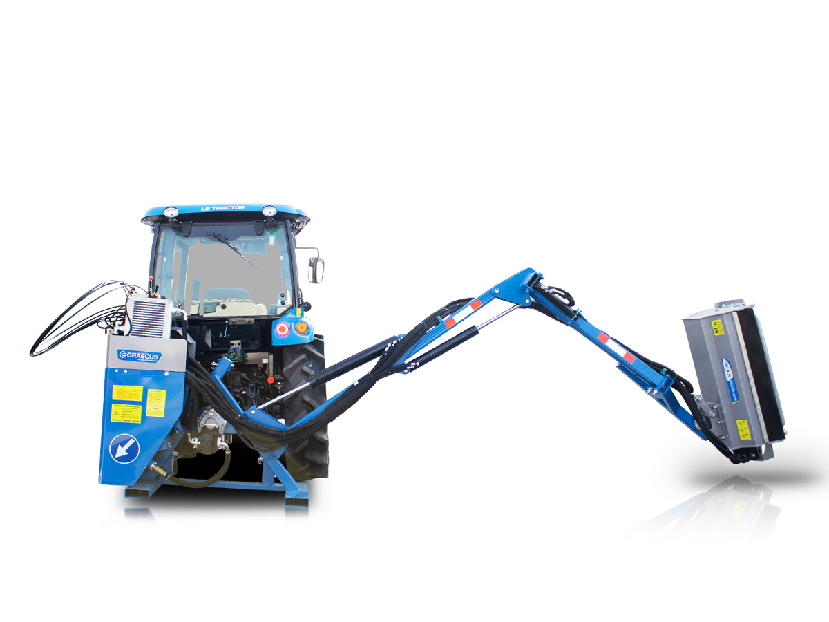 Καταστροφέας με βραχίονα, υδραυλικά αυτόνομος για το πίσω μέρος του τρακτέρ. Κατάλληλος για εργασίες σε επικλινές έδαφος, σε χλοοτάπητες, στις παρυφές των δρόμων και σε κήπους.