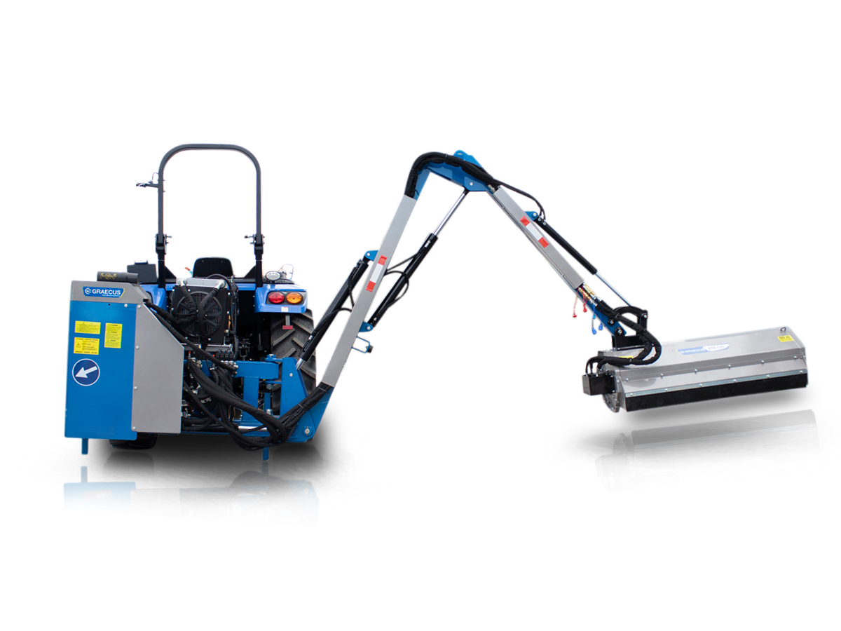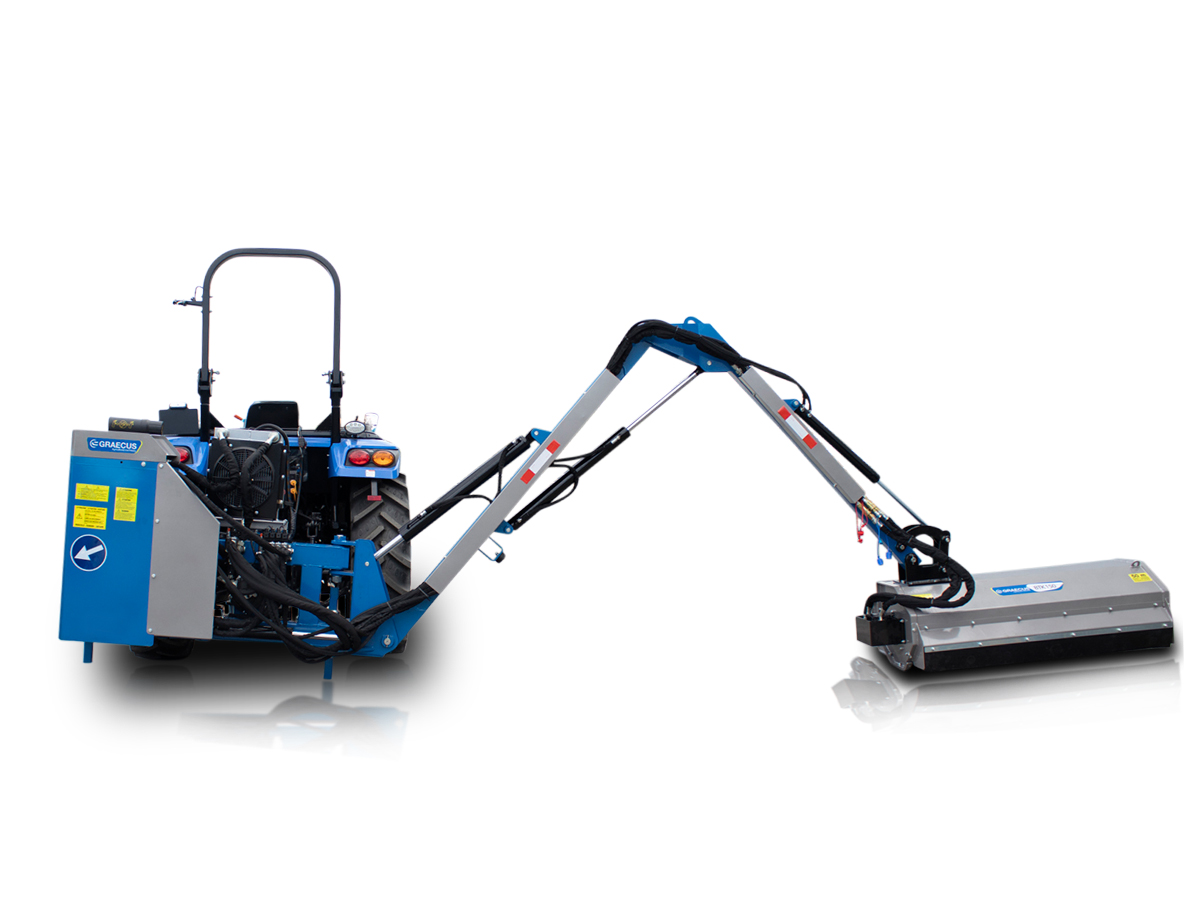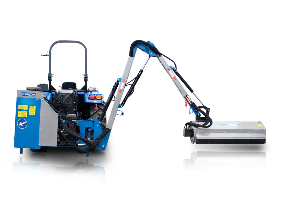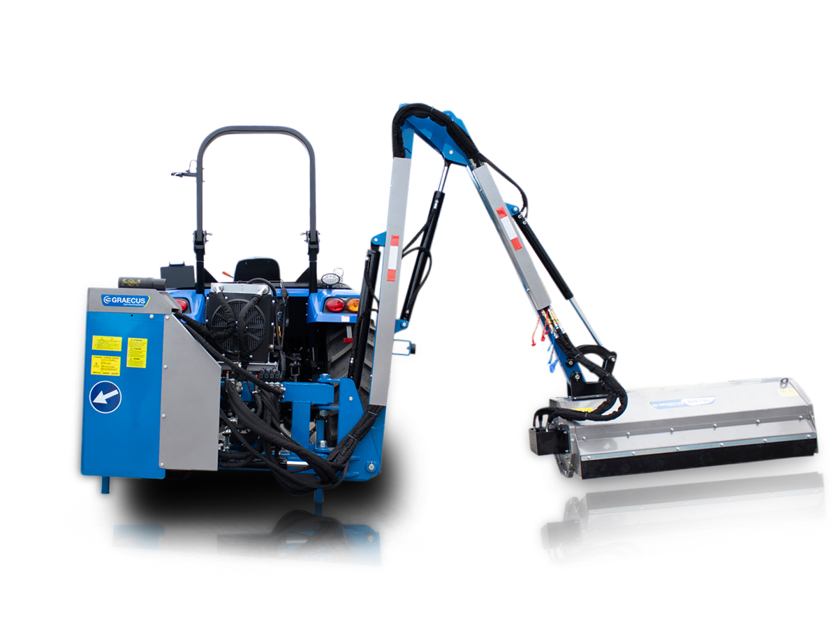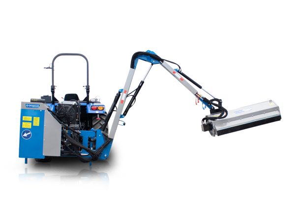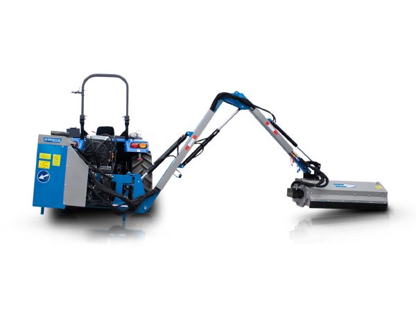 Καταστροφέας με βραχίονα βαρέως τύπου, υδραυλικά αυτόνομος για το πίσω μέρος του τρακτέρ. Κατάλληλος για εργασίες σε επικλινές έδαφος, σε χλοοτάπητες, στις παρυφές των δρόμων και σε κήπους.