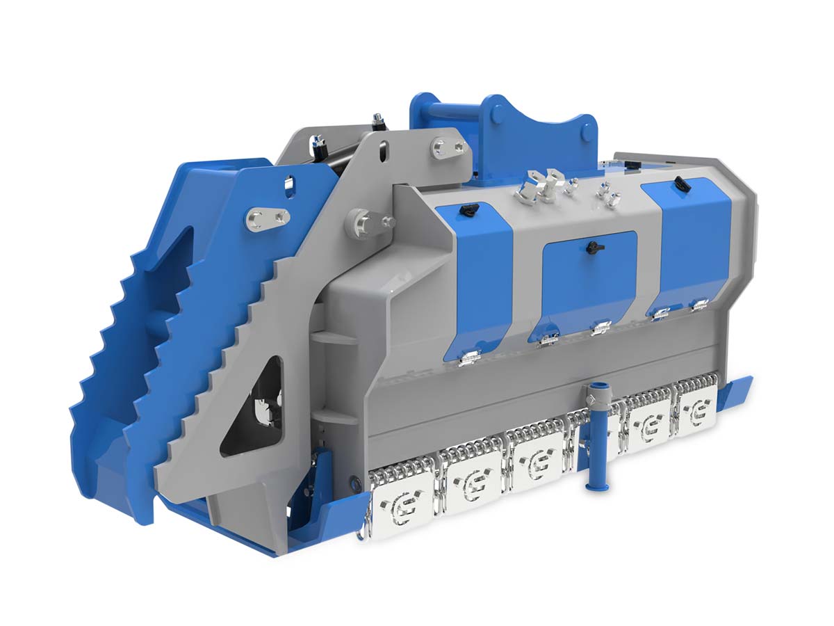 - Δύο πόρτες για βέλτιστο θρυμματισμό, που μειώνει την εκτίναξη του θρυμματισμένου υλικού